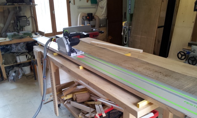 fabrication du plancher et du dessus de l'armoire en lamellé collé