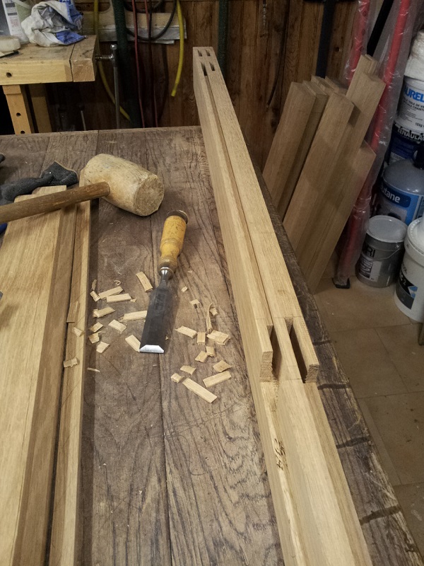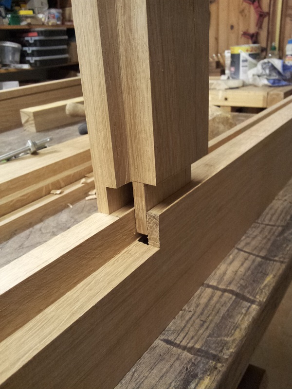 le tenon est monté a blanc par la suite il sera verouillé avec des chevilles