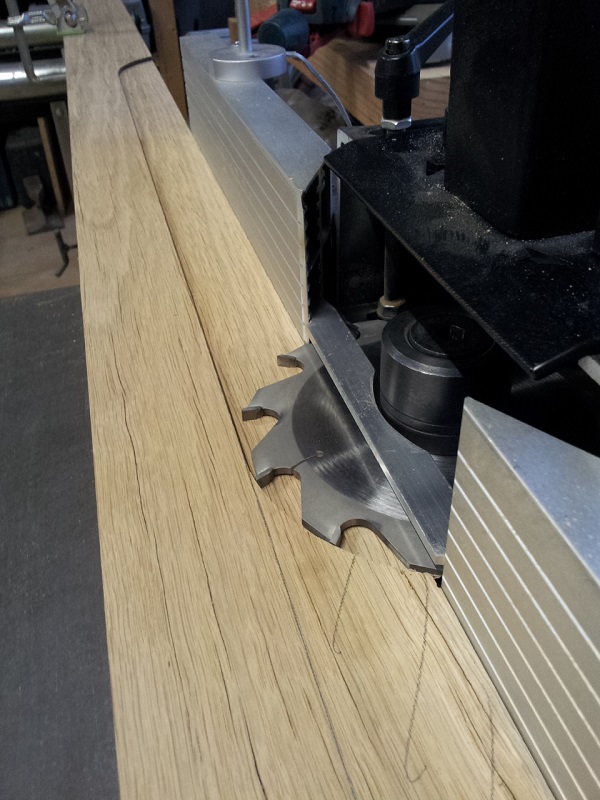pour les pieces longues une règle en alu est fixée devant la table en fonte